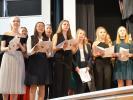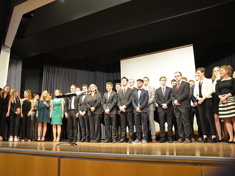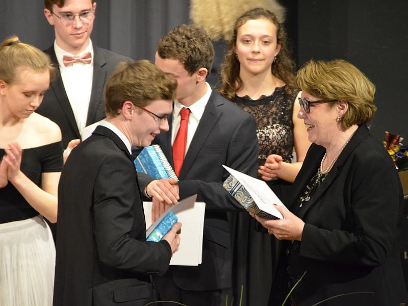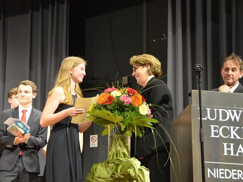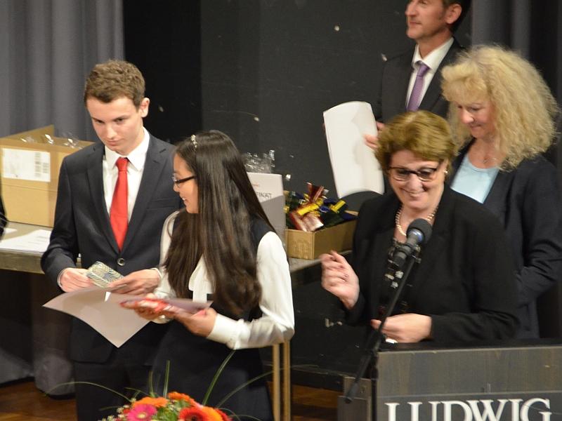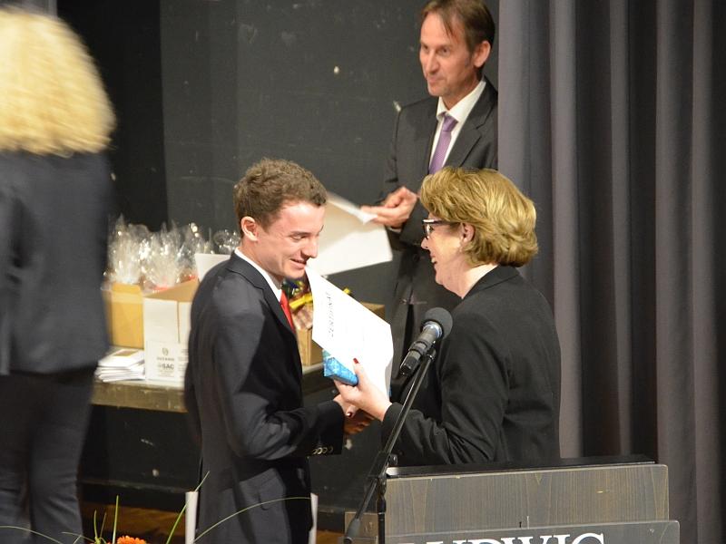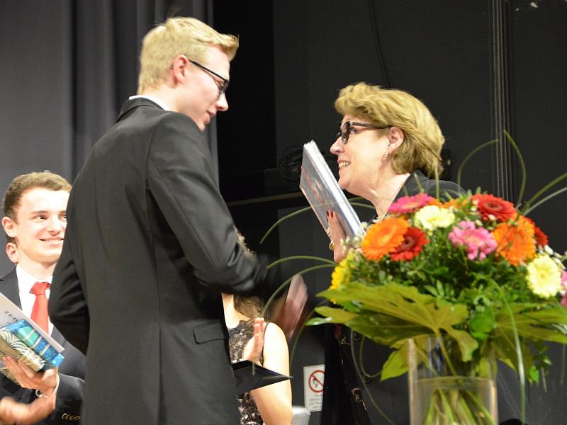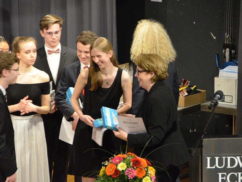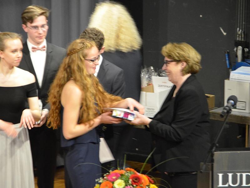 Zahlreiche Schülerinnen und Schüler erhielten wegen herausragender schulischer Leistungen und ihres Engagements innerhalb der Schule Preise und Auszeichnungen, bevor dann schließlich die Abiturzeignisse von der Schulleiterin und den Stamkursleiteren ausgegeben wurden.