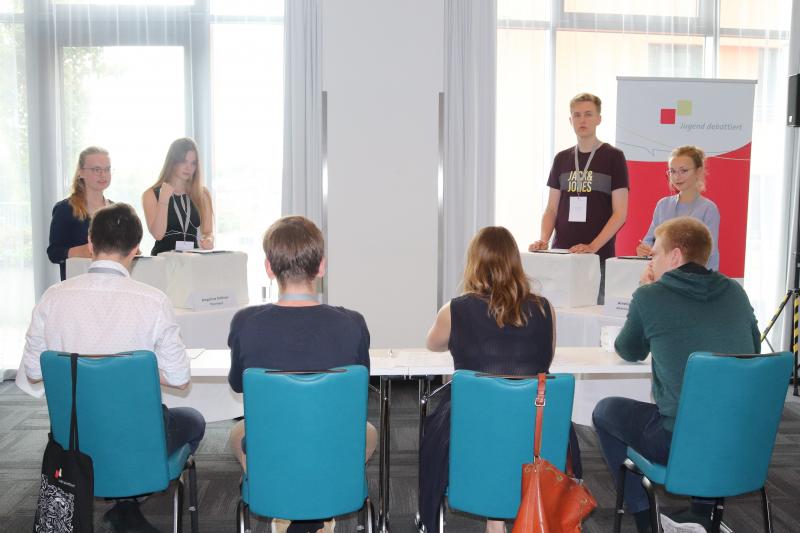 Schon am Abend des Anreisetages erhielten wir den Turnierplan mit den Themen der Debattenrunden, den ausgelosten Positionen und ausgelosten Mitdebattanten. Zwei Wochen vor den Bundesfinaltagen bekamen alle Landessieger die drei Debattenstreitfragen ihrer Altersklasse. Wir mussten uns sowohl für die Pro-Position als auch für die Contra-Position zu Hause vorbereiten.