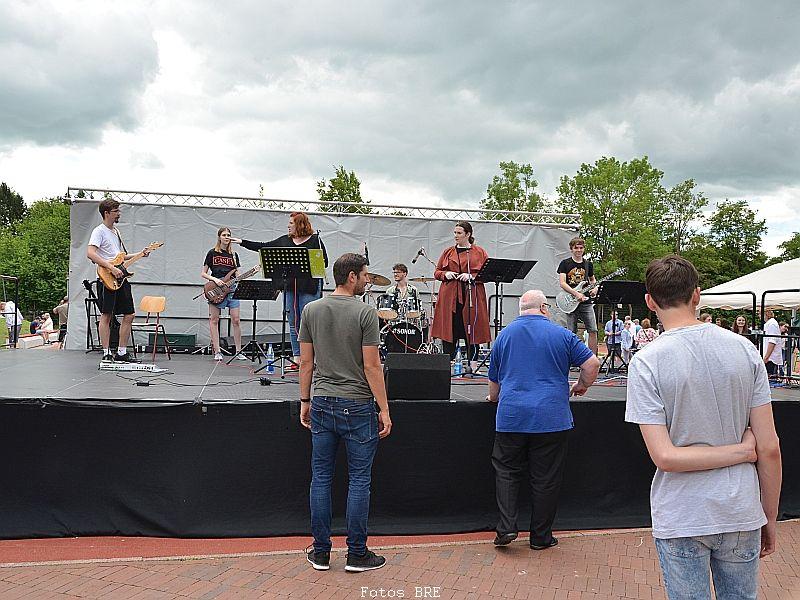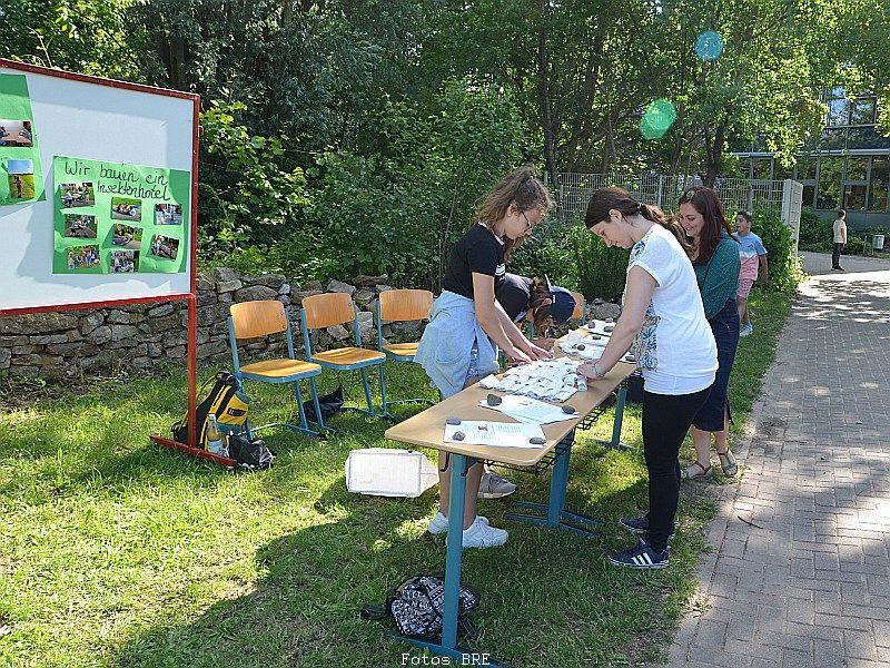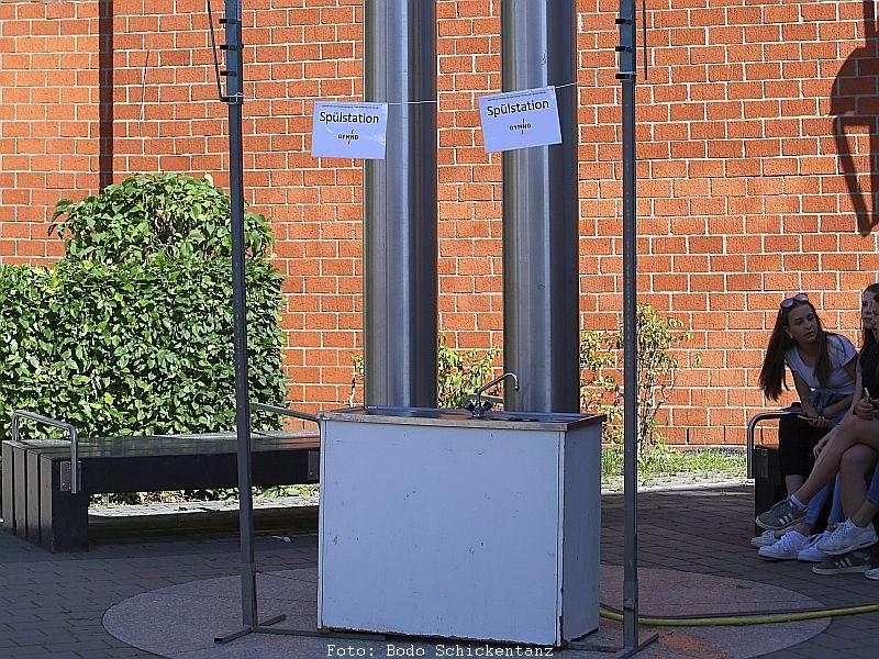 Noch lange vor den „friday for future“-Demonstrationen hatte das Organisationsteam sich bereits darauf verständigt, jeglichen Plastikmüll zu vermeiden. Auf Einwegbecher und -Teller wurde komplett verzichtet. Stattdessen gab es GYMNO-Becher, die nun nachhaltig bei allen zukünftigen Veranstaltungen genutzt werden. Deshalb wurde „unglaublich wenig Müll auf diesem Fest produziert“, so die beiden Hausmeister Michael Kissel und Markus Oehler.