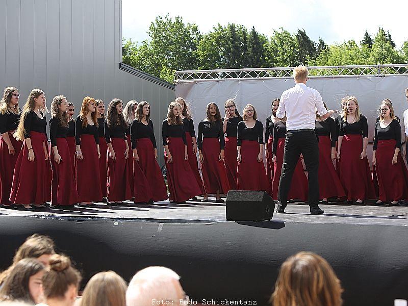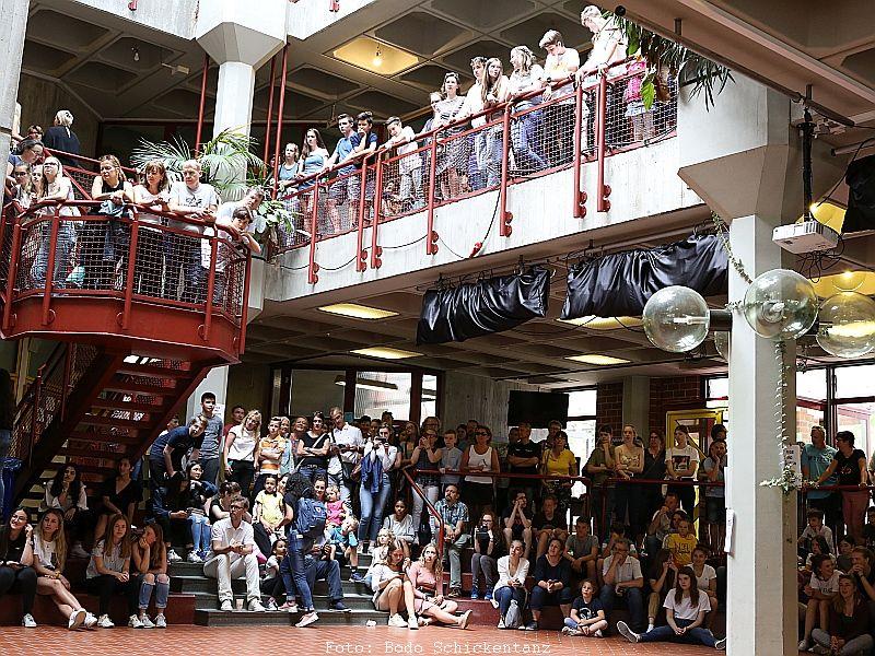 Auf das Jubiläumsfest hatten die Schülerinnen und Schüler, Ehemaligen, Eltern und Lehrenden sich an drei Tagen in über 70 Projekten unter dem Motto „Talente entdecken“ vorbereitet. Die Ergebnisse der Arbeitsgruppen wurden am Samstag auf dem gesamten GYMNO-Gelände präsentiert. Entstanden ist dabei ein buntes Potpourri aus Sport-, Tanz-, Kunst- und Musikdarbietungen. Außerdem gab es jede Menge Ergebnisse aus den Literatur- und Geschichtsprojekten, Koch- und Wanderprojekten zu bestaunen. Über die Kreativität und Ausdauer der Teilnehmer in den jahrgangsübergreifenden Gruppen kann man sich weiterhin auf dem Schülerblog unter www.gymnoblog.wixsite.com/website informieren.