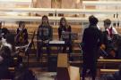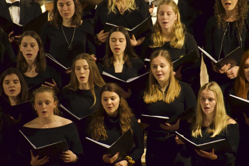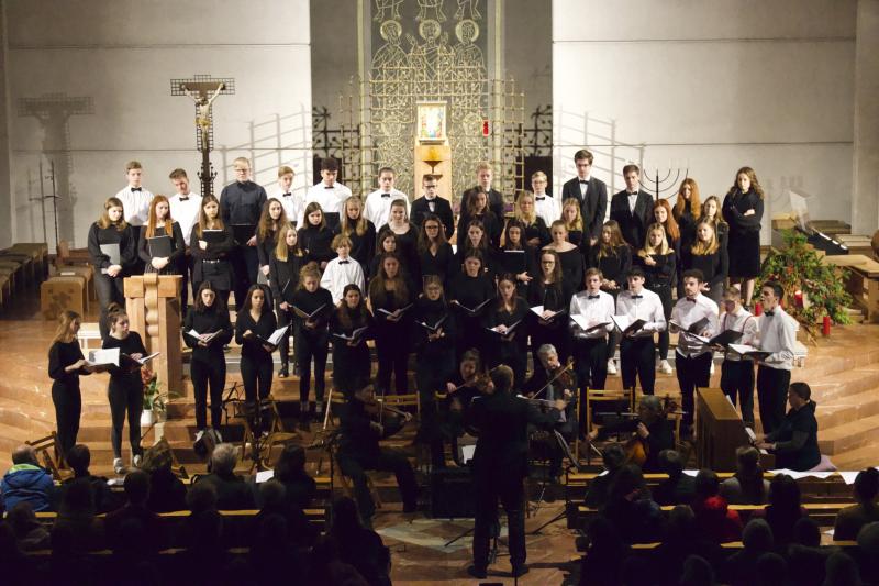 Den Altarraum füllten alle Chor- und Orchester-Ensembles des Gymnasiums: Die Gesangsklassen (6a und 6b donnertags/5a, 5b und Mittelstufenchor freitags), der Kammerchor, der Oberstufenchor, das Olag*-Ensemble (Lehrer-Orchester plus special guests), das Orchester und einige ehemalige Schülerinnen und Schüler sowie Lehrer.