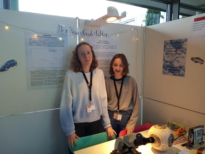 Das hohe Maß an Kreativität und Eigenarbeit sowie die Auseinandersetzung mit einem aktuellen Umweltthema haben die Jury überzeugt, den Preis für die schöpferisch beste Arbeit in der Kategorie ,,Schüler experimentieren‘‘ und den Sonderpreis „Umwelttechnik“ an Nina Arnold und Leonie Bernhart und ihren Feinstaubfilter zu vergeben. Im Fachgebiet Arbeitswelt erhielten sie den 3. Preis.