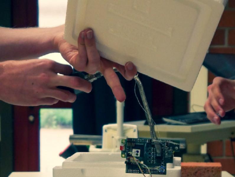 In der nächsten Phase wurde die Box mit den Sensoren in der Kältekammer der Johannes-Gutenberg-Universität Mainz getestet. Bei -30 °C konnten wir so die Funktionalität und Temperaturbeständigkeit der Sensoren auf die Probe stellen.