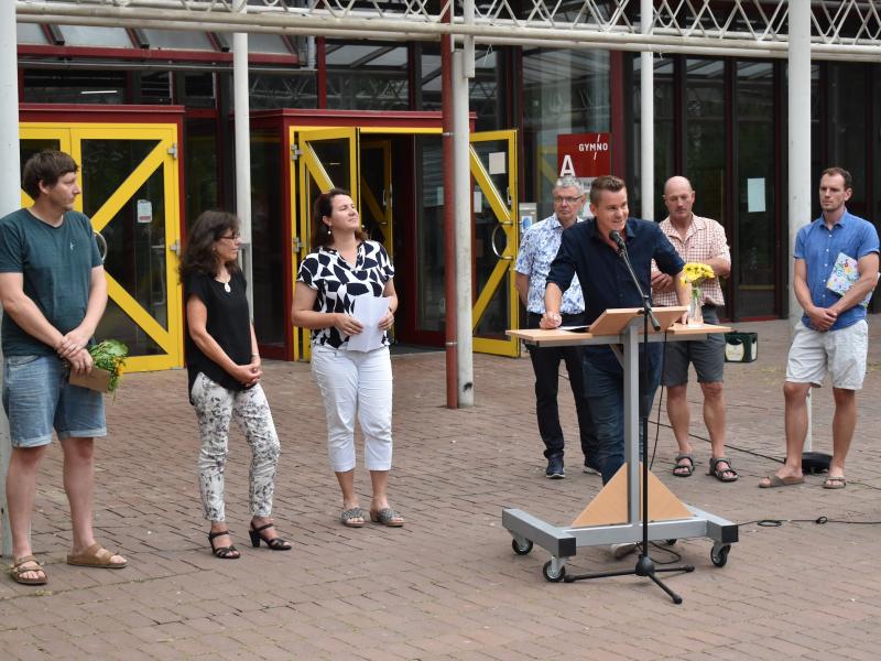 Wir verabschieden uns von den Referendar*innen, die kürzlich ihre zweite Staatsprüfung erfolgreich bestanden haben und nun an eine andere Schule wechseln: Tino Catania, Sabine Feyrer, Kevin Klee, Valentin Glasner, Jonathan Leisch und Marc Schönborn. Wir wünschen ihnen viel Erfolg an der neuen Schule und freuen uns sehr, dass Yves Hellenkamp und Sarah Braun weiterhin am Gymno unterrichten.