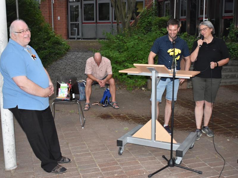 Sehr engagiert erlebte das Kollegium auch die Arbeit der beiden Schulsozialarbeiterinnen. Christiane Sternjacob war seit 2014 an unserer Schule tätig. Sie stand den Klassen- und Kursleiterin immer mit Rat und Tat zur Seite und bereitete kleine Schulungsprogramme zum Umgang mit kooperativen Spielen für die Lehrer*innen vor. Im letzten Jahr wurde sie dabei tatkräftig von Mira Kopp unterstützt. Beide Schulsozialarbeiterinnen hatten bei pädagogischen Problemen immer ein offenes Ohr und unterstützten viele Schüler*innen in Einzelgesprächen. In Zukunft werden sie sich neuen Aufgaben außerhalb des Gymnos widmen.