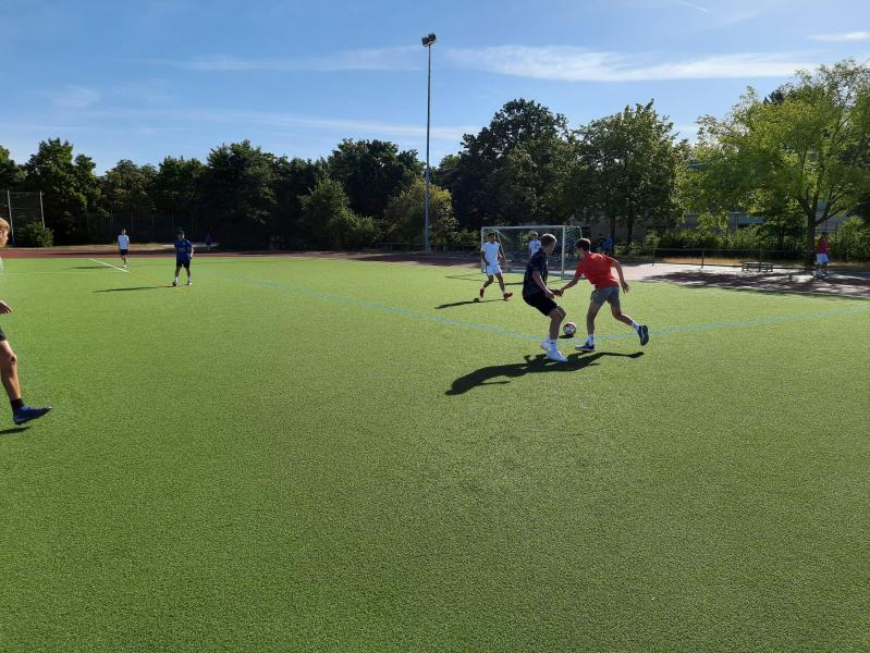 Am letzten Schulmontag richtete der Sport-LK im Jahrgang 12 für die neunten Klassen das Fußballturnier aus. Endlich wieder kicken schien das Motto dieses stimmungsvollen und freudvollen Vormittags.