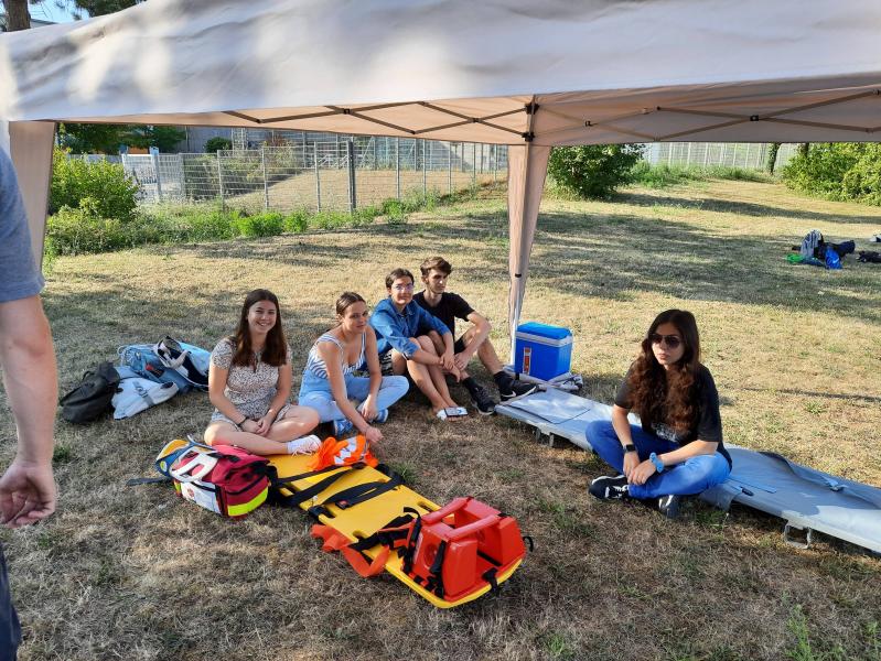 Der Sport-LK bedankt sich beim der Ton-AG für die Bereitstellung der Soundanlage und beim Schulsanitätsdienst für die Bereitschaft.