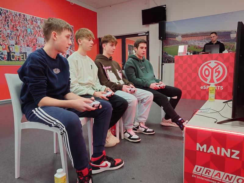 Das Kräftemessen auf einem virtuellen Rasen an der Konsole weckt bei den Jugendlichen große Begeisterung und Freude am Spiel. So nahmen insgesamt zwölf Schulen an dem Turnier in der MEWA Arena in Mainz teil. Im Achtelfinale mussten sich unsere beiden Teams geschlagen geben.