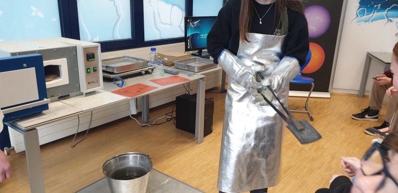 Ob künstliche Gelenke in der Medizin, Mikrochips für Computer und Maschinen oder Solarzellen auf Hausdächern - moderne Werkstoffe bestimmen unser Leben. Dabei bestehen sie oft aus einfachen Grundsubstanzen wie Eisen, Sand oder Graphit. Aber wie wird daraus ein Hochleistungsstoff? Im Experiment konnten die Schülerinnen und Schüler selbst herausfinden, wie man aus einem Stück Draht eine besondere Form mit Memory-Effekt herstellt.