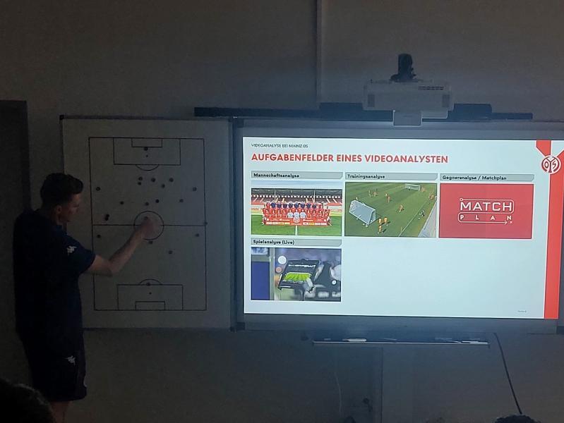 Im Rahmen des 05er Klassenzimmers hatten die Schüler:innen die Möglichkeit von Alexander Döhm (Videoanalyst U23) die unterschiedlichen Themengebiete der Videoanalyse im Profifußball näher kennenzulernen.
