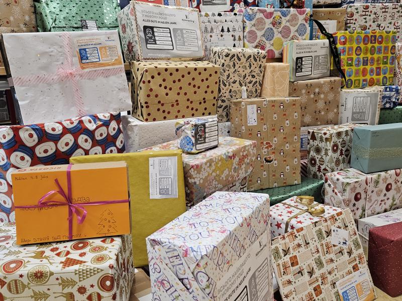 Die Bereitschaft, diese Aktion zu unterstützen, war sehr groß. Über 200 weihnachtlich gepackte Geschenkekartons konnten wir den Organisatoren übergeben. Kleidung, aussortiertes Spielzeug und vieles mehr sind auf dem Weg zu Kinder- und Waisenheimen in die Ukraine, um den Kindern und Jugendlichen vor Ort eine Freude zu bereiten.