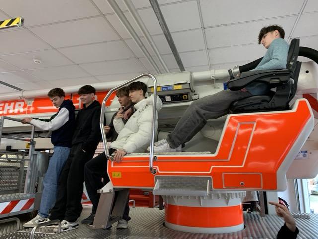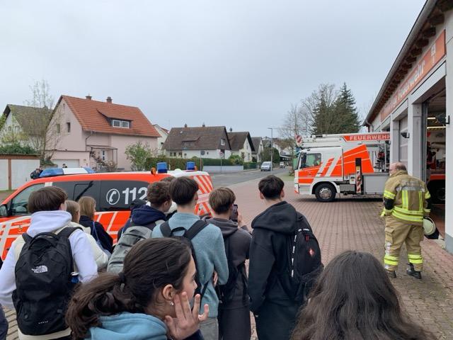 Am Ende des Ausflugs konnte die Klasse live miterleben, wie die Feuerwehr tatsächlich wegen eines Zimmerbrandes alarmiert wurde. Viele zückten ihr Handy um zu filmen, wie innerhalb von nur ein paar Minuten Feuerwehrmänner in die Einsatzwägen sprangen und die freiwillige Feuerwehr ausrückte.
