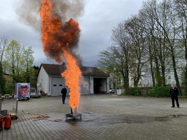 Dort wurden der Klasse die Tätigkeiten der freiwilligen Feuerwehr, die Inneneinrichtung eines Einsatzwagens und das Löschen mit dem Feuerlöscher näher gebracht. Außerdem wurde durch ein kontrolliertes Feuer ein Ölbrand simuliert und davon zahlreich Fotos und Videos gemacht.