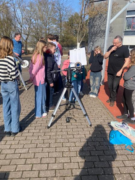 Am Nachmittag des 28.02.24 startete die neue Kooperation zwischen dem Gymno und der Astronomischen Arbeitsgemeinschaft Mainz e. V. mit einer großen Sonnenbeobachtung.