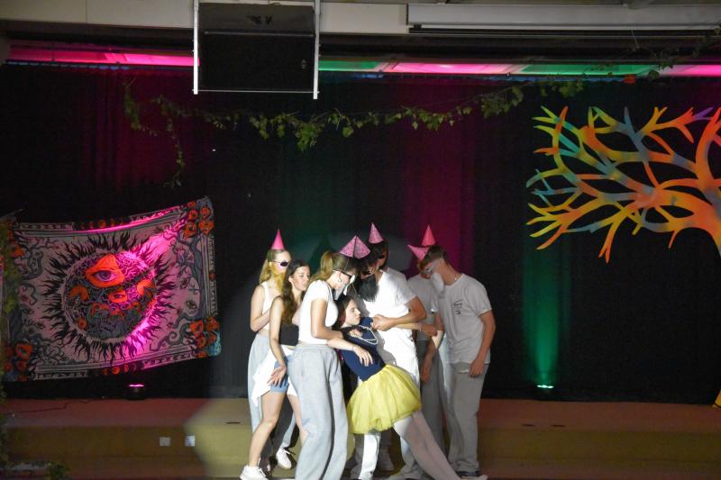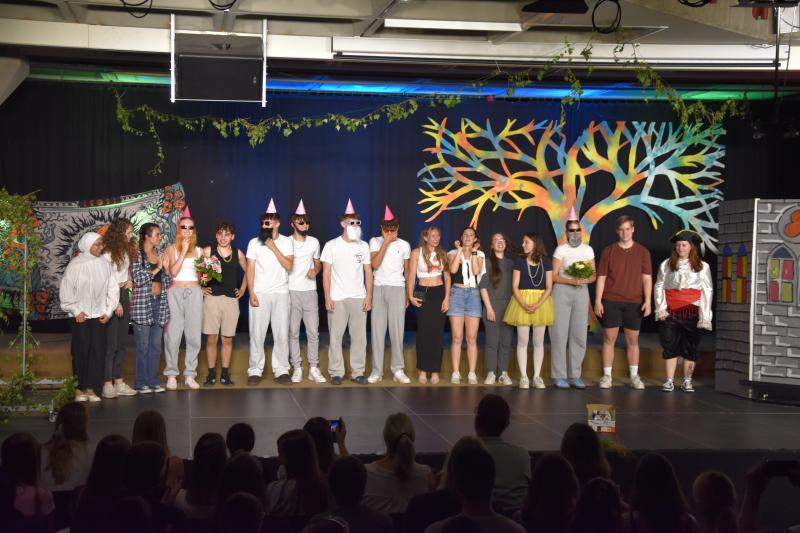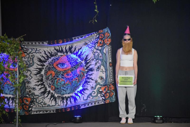 Tatkräftig unterstützt durch die Licht- und Ton-AG unter der Leitung von Frau Weber treffen nun diese beiden verschiedenen Welten aufeinander, und es passiert – vor allem nach dem Genuss von rauschfördernden Pilzen (hier erklärt sich auch die FSK ab 16 Jahren und der Untertitel „Ein Trip ins Märchenland“) – einiges Unvorhergesehenes: