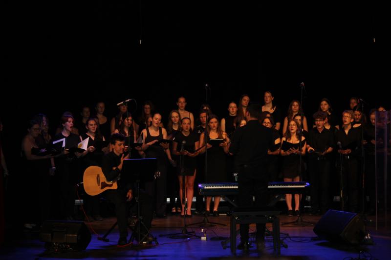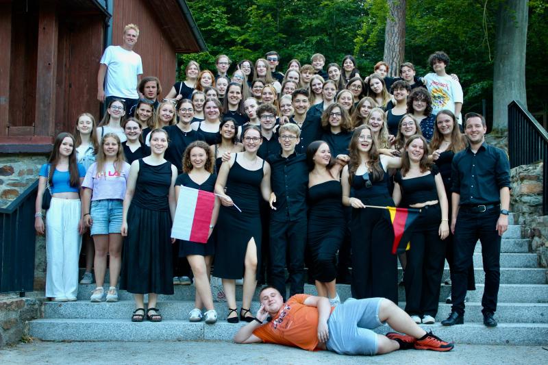 Vor Ort lernten die Schülerinnen und Schüler den polnischen Chor Capricolium kennen, der zur Begrüßung mit einem großen Buffett am Lagerfeuer aufwartete. Neben gemeinsamen Aktivitäten und Erkundungen fanden vor allem gemeinsame Proben statt, um ein großes Konzert im Kulturzentrum in Glucholazy vorzubereiten. Bei diesem Konzert wurden sowohl deutsche als auch polnische Stücke gesungen, was für die jeweils sprachfremde Gruppe eine spannende Herausforderung darstellte, die jedoch mit Bravur gemeistert wurde. Das Publikum honorierte den Auftritt mit langanhaltendem Applaus.