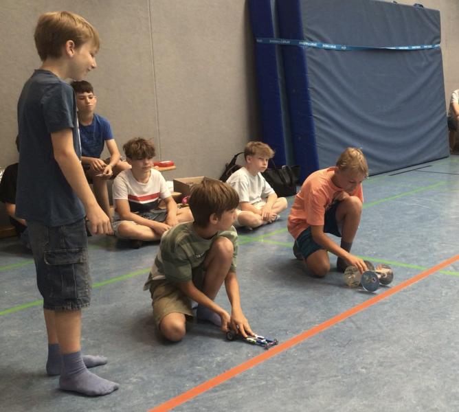 Bei der ersten MINT-Challenge am GYMNO ließen Schüler und Schülerinnen ihre selbstgebauten Rennfahrzeuge gegeneinander antreten.