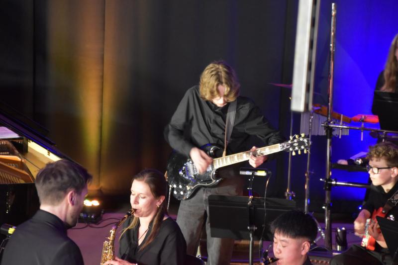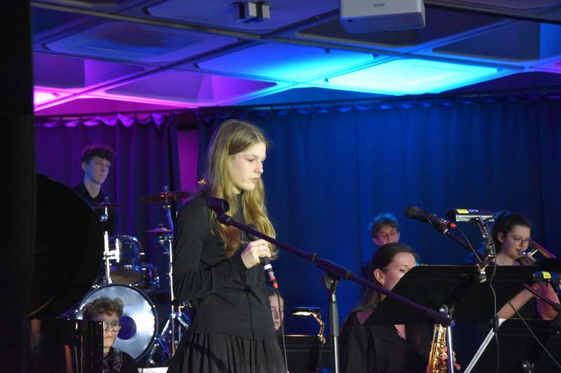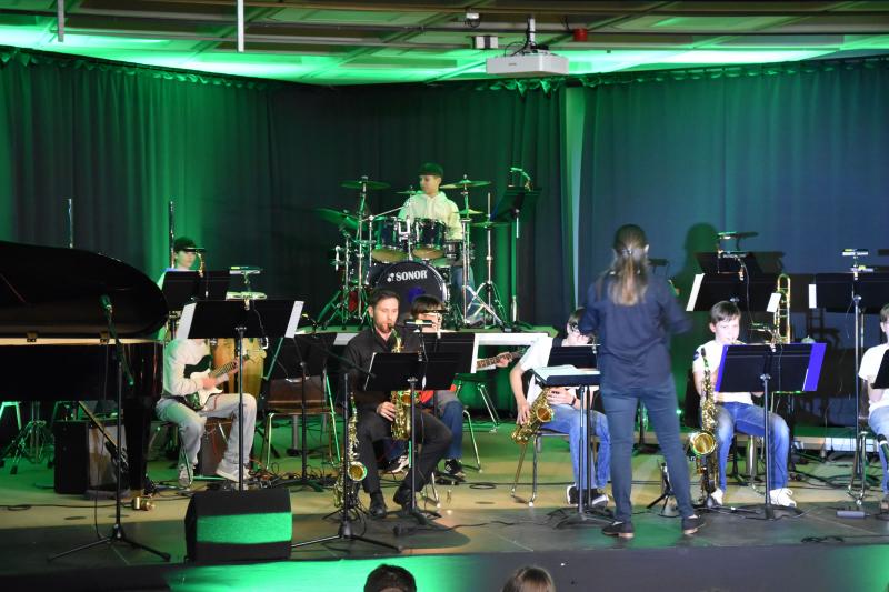 In der Mitte des Abends machten die „Großen“ die Bühne frei für die Nachwuchsband unter der Leitung von Lea Blumberg. Mit Klassikern wie Gimme Some Lovin' oder Seven Nation Army heizten sie dem Publikum ordentlich ein und machten deutlich, dass man sich um die Zukunft der Bigband keine Sorgen machen muss.