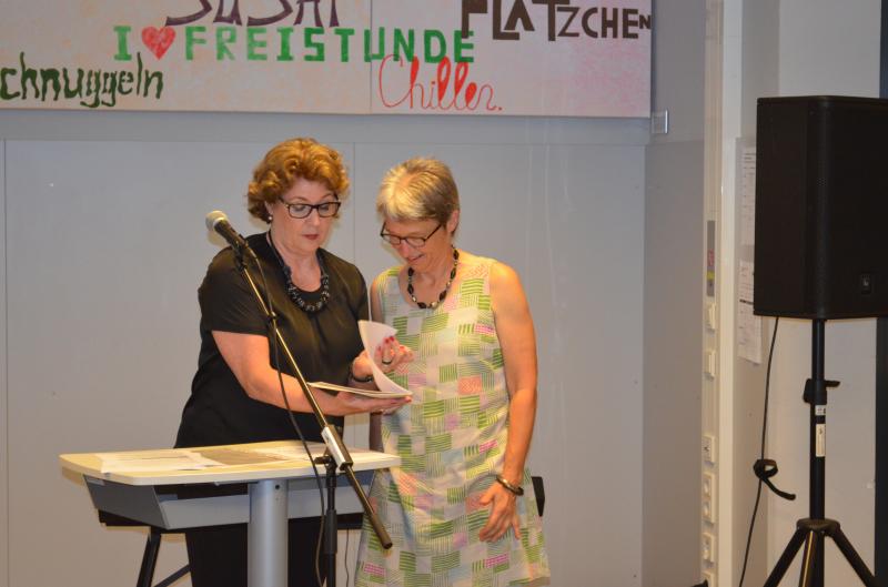 (Foto: Schulleiterin Christel Frey verabschiedet Renate Birkmeyer)