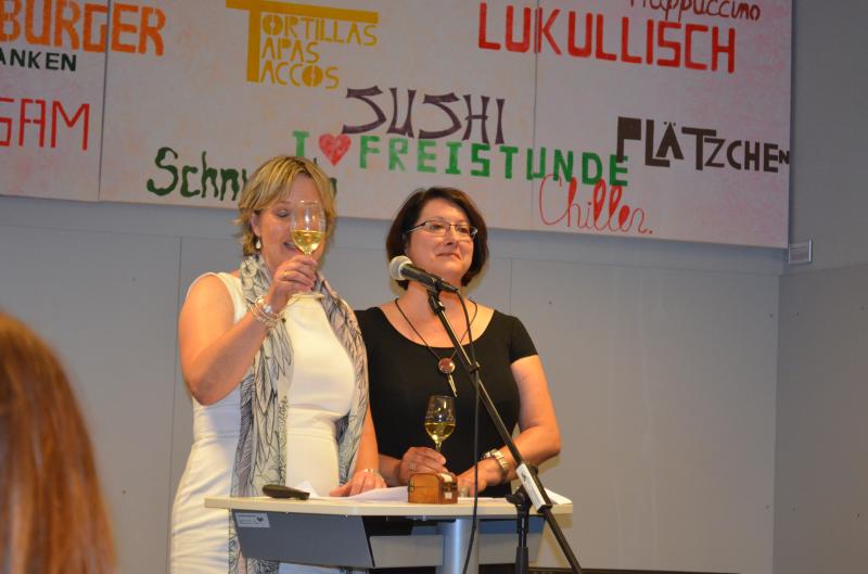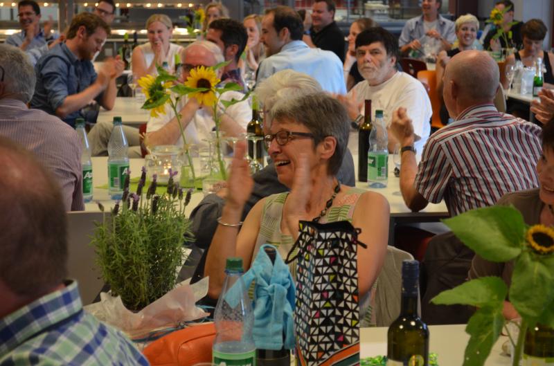 Auch wenn ein bisschen Wehmut im Spiel war - es war ein fröhliches Fest, bei dem am Mittwochabend der letzten Schulwoche vor den Ferien die Verabschiedung von drei Menschen gefeiert wurde, die das Gymnasium Nieder-Olm sehr geprägt haben: StD' Renate Birkmeyer, OStR' Birgit Stecker und StD Joseph Zeimentz.