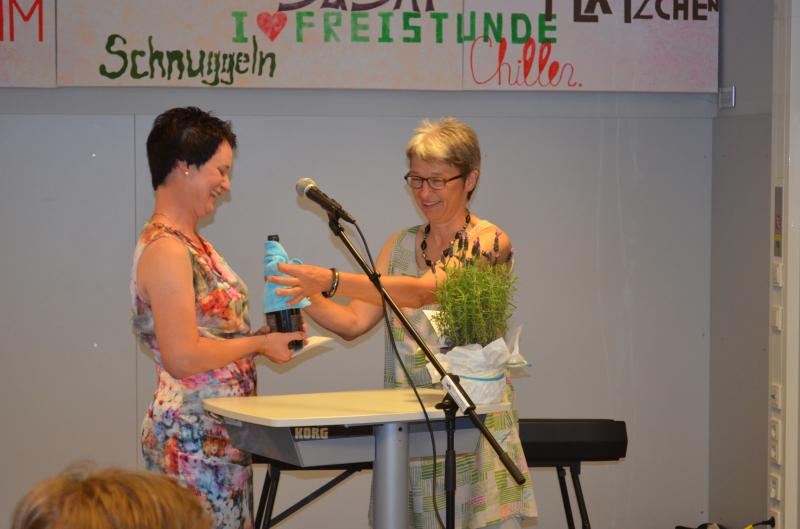 Birgit Stecker verlässt die Schule nach 30 Jahren. Sie unterrichtete Sport und Erdkunde. Durch ihre lebendige, fröhliche und pragmatische Art hat sie die Schule an unterschiedlichen Stellen geprägt. So hat sie als Personalratsvorsitzende für ein gutes Klima im Kollegenverband gesorgt und führte verpflichtend den Fair-Trade-Kaffee an der Schule ein. Dem Sport gab sie durch ihre langjährige Safer-Skating-AG einen besonderen Akzent und sie organisierte bis zuletzt die Bundesjugendspiele. Nebenher zeichnet Frau Stecker sich durch ihr gesellschaftliches Engagement als Gemeinderatsmitglied in ihrer Heimatgemeinde sowie Schöffin aus.