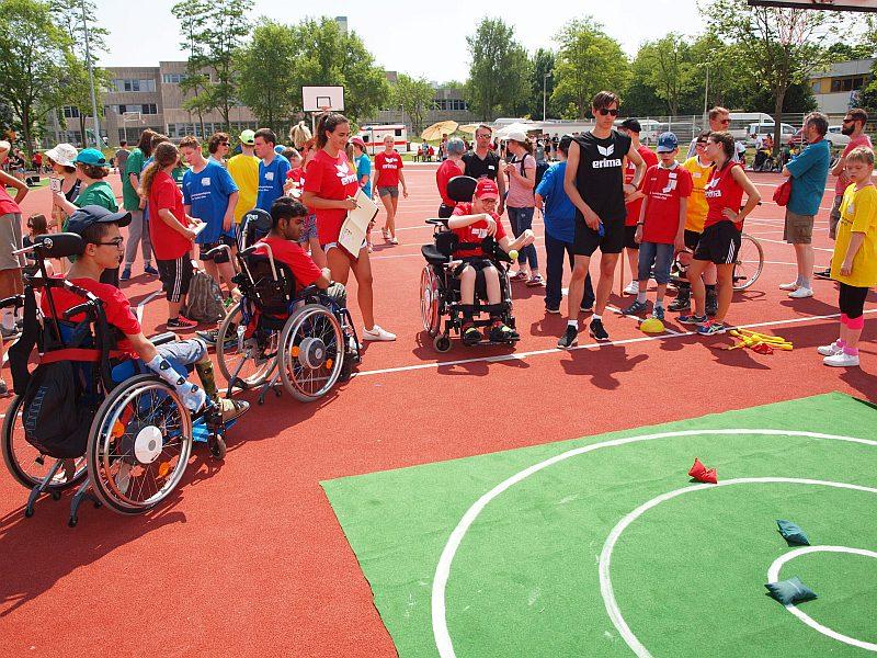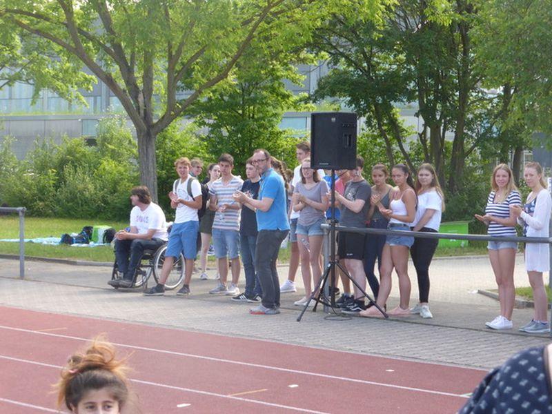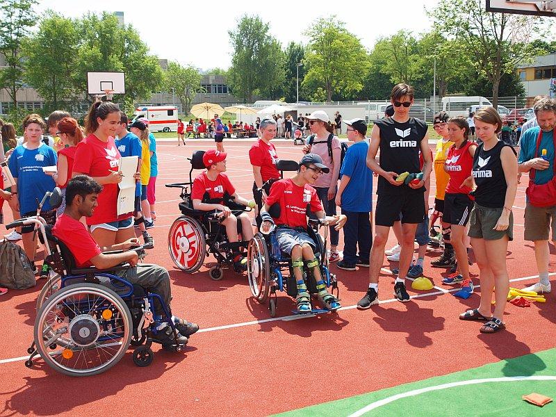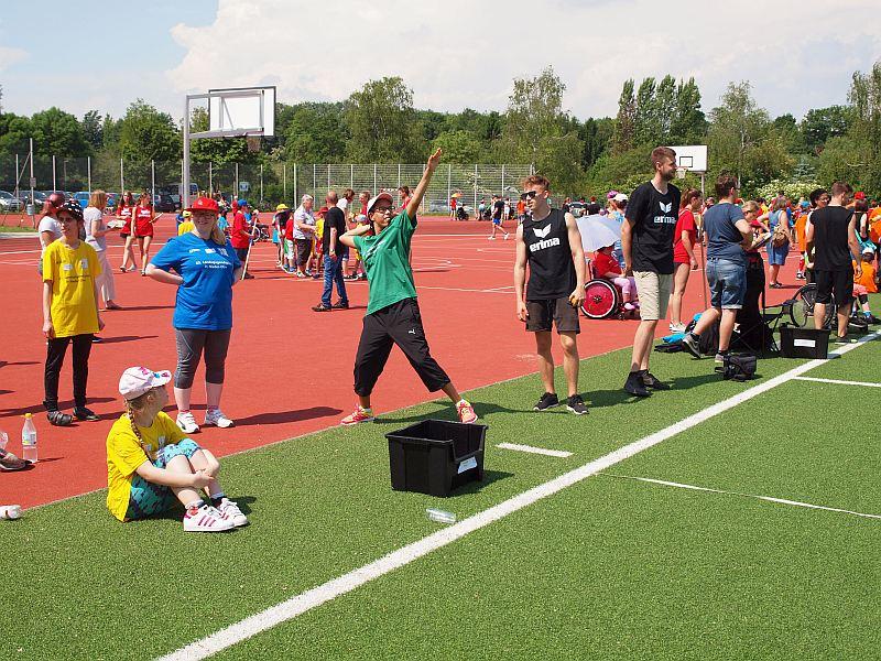 Ab 8.00 Uhr unterstützten die Schülerinnen und Schüler der Leistungskurse Sport aus den Jahrgangsstufen 11 und 12 das Sportfest. Aufbau und Betreuung von 20 unterschiedlichen Stationen gehörten ebenso zum Programm wie Improvisation bei unvorhersehbaren Ereignissen. Die ganze Leistungsbreite behinderter Athleten - darunter vielleicht künftige Paralympicsteilnehmer - konnte hier hautnah erfahren werden, traten die Teilnehmer des Sportfestes doch in 39 unterschiedlichen Behinderungsklassen an.