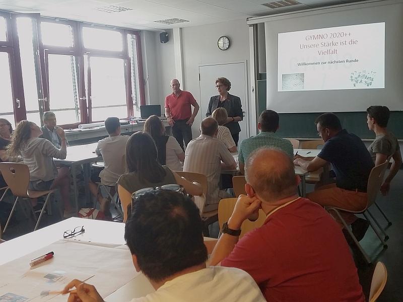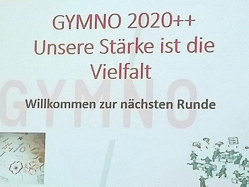 Der Begriff GYMNO 2020 will mit dem ++ Zeichen darauf hinweisen, dass die im Jahr 2014 eingeführte Diskussionsrunde weiter greift als die Jahreszahl 2020 abbildet. Die diesjährige Runde - mit Vertretern der Schulleitung, der Schülervertretung, des Schulelternbeirats, der Fachkonferenzvorsitzenden sowie des Örtlichen Personalrates und des Schulausschusses – knüpfte nahtlos und mühelos an die vorangegangenen Veranstaltungen an.