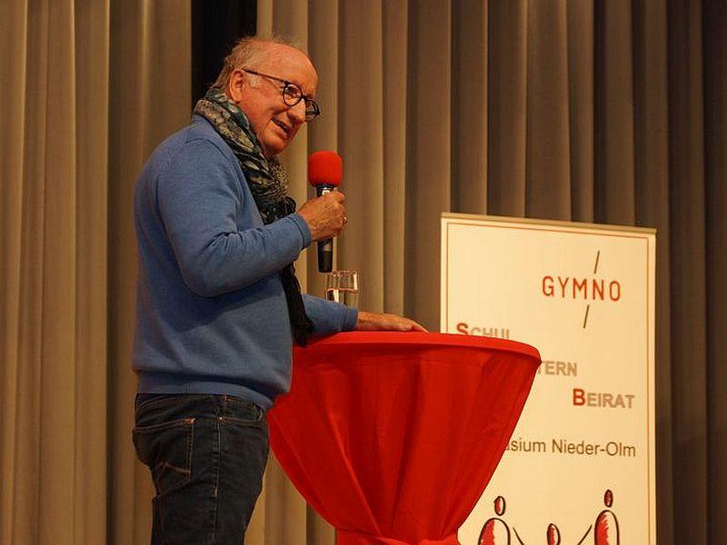 Erziehungsexperte Jan-Uwe Rogge war der Einladung des Schulelternbeirates des Gymnasiums Nieder-Olm gefolgt und brachte die ausverkaufte Eckes-Halle am Nikolaustag zum Toben.