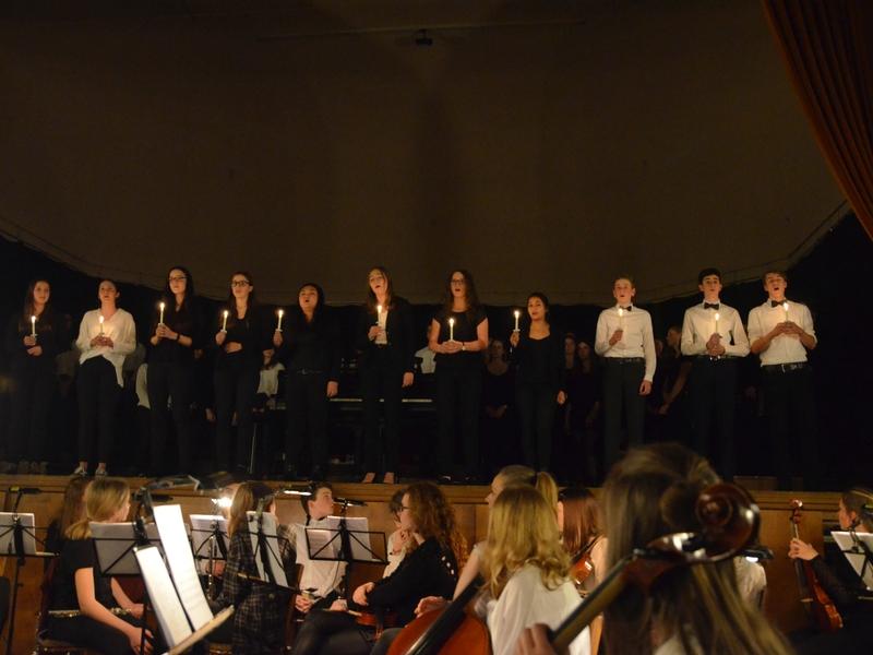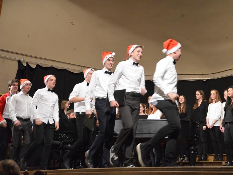 Wunderschöne Stimmen erfüllen die Saulheimer Sängerhalle - sie gehören zum Kammerchor des GYMNO. Dessen Mitglieder stehen mit Kerzen in den Händen auf der abgedunkelten Bühne und singen „That‘s Christmas to me“ von den Pentatonix. Und mir wird sofort klar: Das wird mein neues Lieblings-Weihnachtslied.