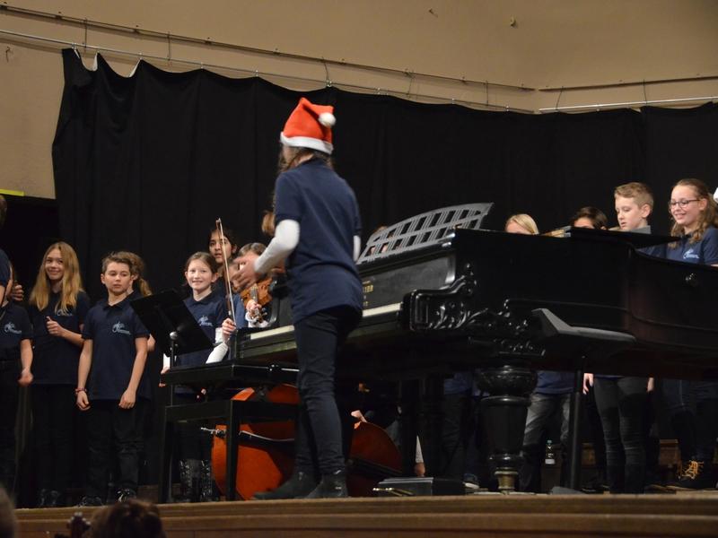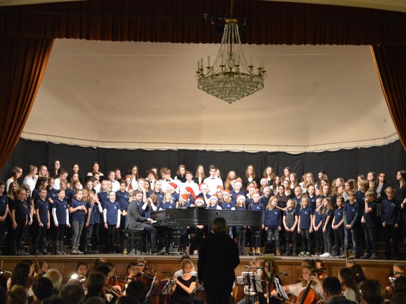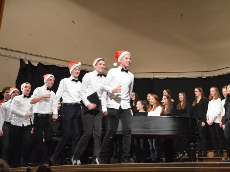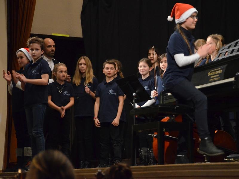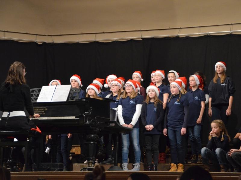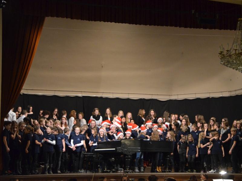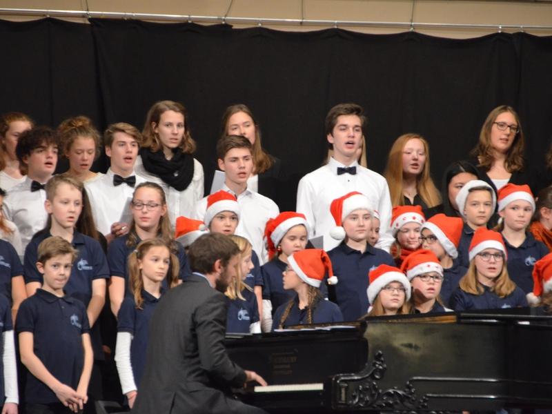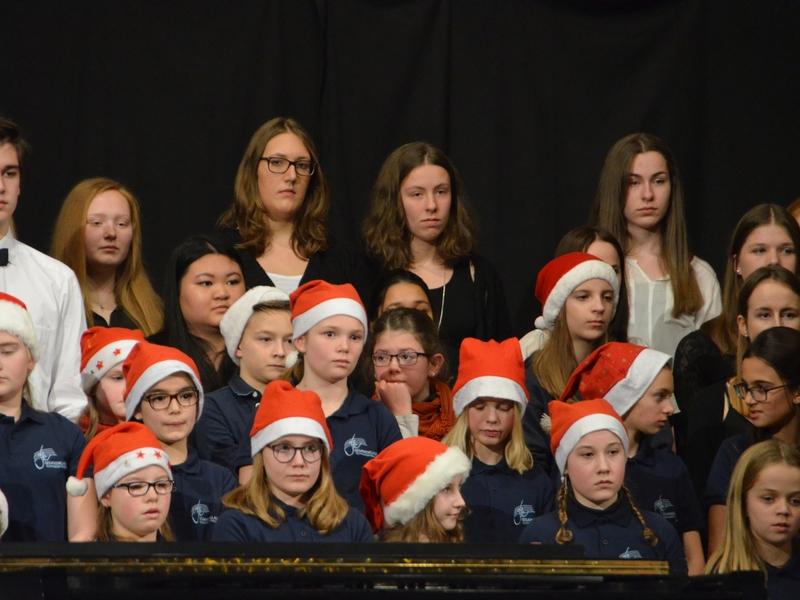 Catherine Weber hob in ihrer Moderation lobend die Unterstützung der Sängerakademie Saulheim, der Eltern und Lehrer der Mitwirkenden hervor. Sie bedankte sich bei Frau Obermann für die Dekoration und natürlich bei den Mitwirkenden: der Gesangsklassen 5a, 5b, 6a und 6b unter der Leitung von Marcel Rudszeck, Veronika Voss und Roland Bolender, dem Unterstufenchor, dem 7er und 8er Chor sowie dem Oberstufen- und Kammerchor des Gymnasium ebenfalls unter der Leitung von Roland Bolender. Ein besonderer Dank kam dem von ihr selbst und Denise Pöppler geleiteten Schulorchester zu.