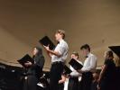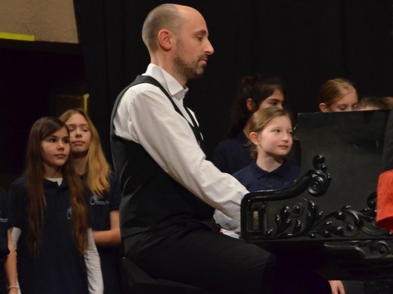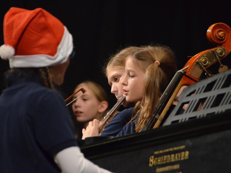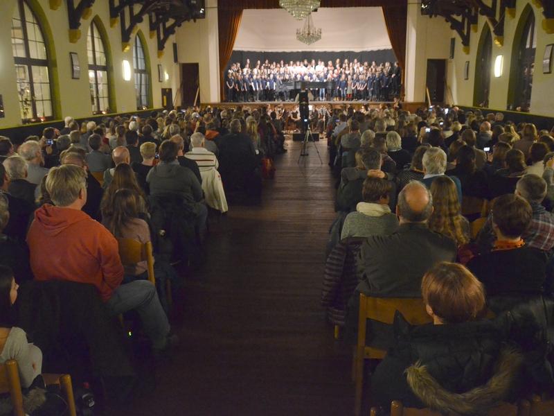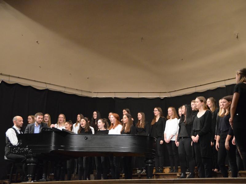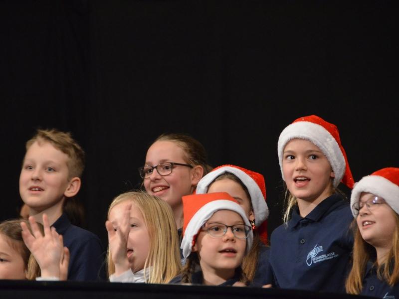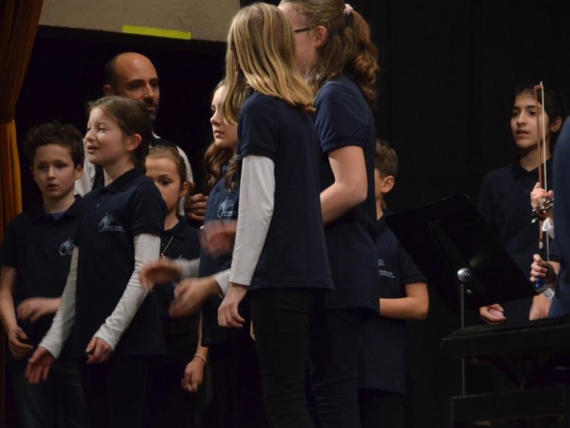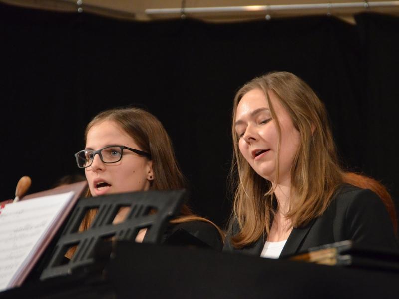 Catherine Weber hob in ihrer Moderation lobend die Unterstützung der Sängerakademie Saulheim, der Eltern und Lehrer der Mitwirkenden hervor. Sie bedankte sich bei Frau Obermann für die Dekoration und natürlich bei den Mitwirkenden: der Gesangsklassen 5a, 5b, 6a und 6b unter der Leitung von Marcel Rudszeck, Veronika Voss und Roland Bolender, dem Unterstufenchor, dem 7er und 8er Chor sowie dem Oberstufen- und Kammerchor des Gymnasium ebenfalls unter der Leitung von Roland Bolender. Ein besonderer Dank kam dem von ihr selbst und Denise Pöppler geleiteten Schulorchester zu.