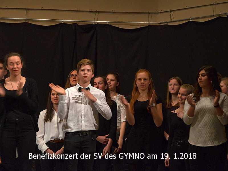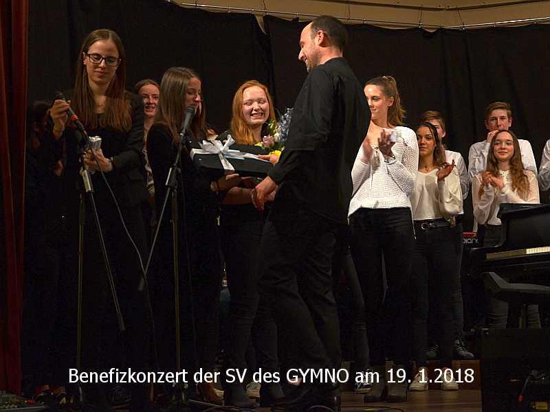 Zuvor bedankte sich das Publikum bei Leah Klussmann, der Schülersprecherin des GYMNO, für die Organisation des Konzerts mit einem tobendem Applaus. „Diese junge Frau hat ungemein viel Verantwortung für das Konzert übernommen und hat diese Aufgabe hervorragend gemeistert,“ so die Schulleiterin Frau Frey.