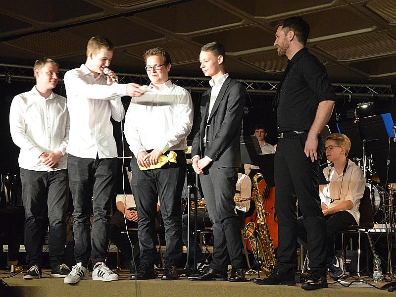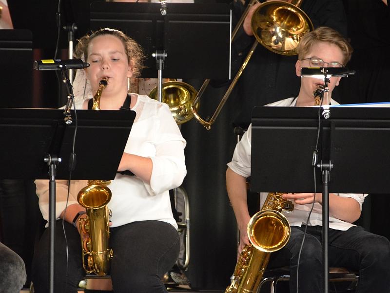 Ein Garant für die hohe Qualität sind die vielen langjährigen Band-Mitglieder aus der Jahrgangstufe 12 sowie vier Abiturienten, die sich auch an diesem Abend von der Band verabschiedeten.