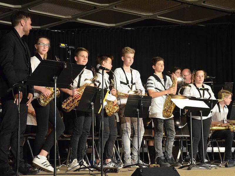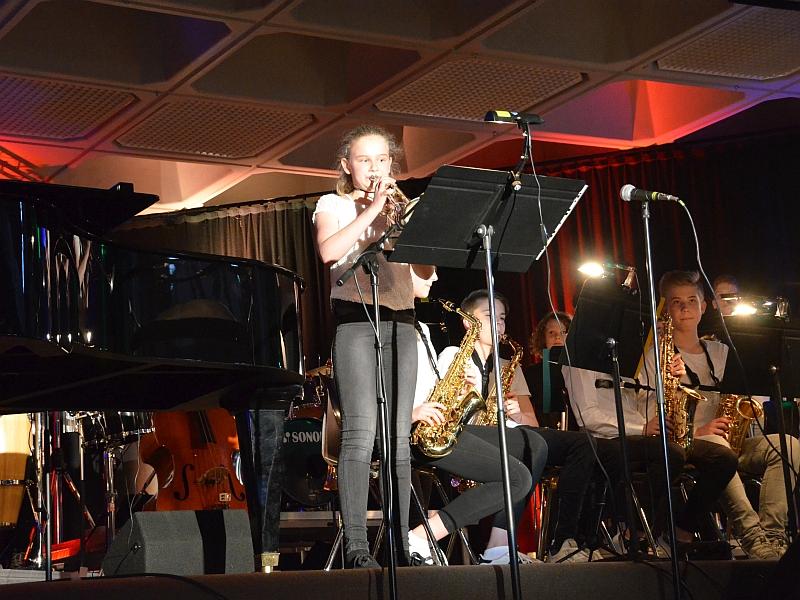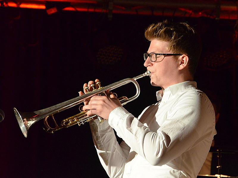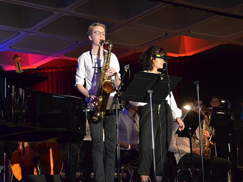 Eine „leistungsstarke Darbietung“ hatte Marcel Rudszeck für das Jahreskonzert der Gymno Big-Band versprochen. Nicht zu wenig, denn die Rhythmen wurden im Verlauf des Abends immer grooviger und der Sound immer voller. Vor allem die virtuosen Soloeinlagen von Henry Schappert (Saxofon) und Johann Prinz (Trompete) sowie die starke Stimme der neuen Sängerin Charlotte Koch schafften glanzvolle Höhepunkte und zeigten, wie vielseitig die aktuelle Big Band ist. Ihr Repertoire reicht von Rock über Funk und Swing bis hin zu Balladen. Neben Marcel Rudszeck übernahmen auch Wolfgang Rieger und der Musik-Allround-Schüler Moritz Holdenried das Dirigat.