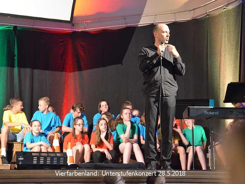 Im Vier-Farben-Land gibt es streng getrennte Viertel, in denen alles, selbst Gedanken und Träume, entweder rot, blau, gelb oder grün sind. Niemand stellt die Trennung in Frage, bis eines Tages der grüne Erbs genug davon hat......Wie er dies anstellt, das konnte man sehen und hören im Unterstufenkonzert, zu dem das Gymnasium Nieder – Olm eingeladen hatte.