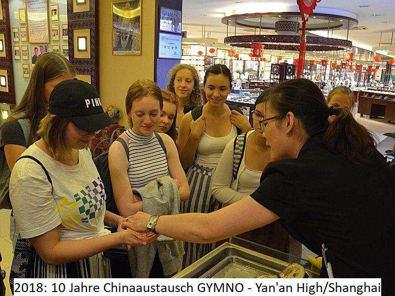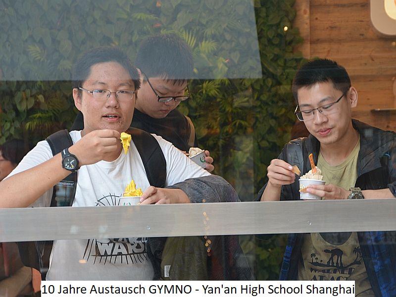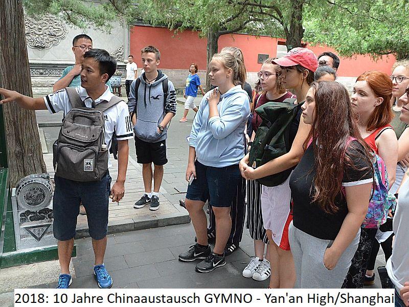 Aber auch die folgenden Tage waren von Traditionen und chinesischer Kultur geprägt. Der Besuch der verbotenen Stadt, das Regierungsviertel und schließlich auch das Klischee schlechthin, ein Fake-Market. Auch wenn dieses Image von China längst veraltet ist, gibt es sie noch immer. 5 Stockwerke voller kleiner Läden, die uns sämtliche Verhandlungsstrategien abverlangten, was einige von uns besser beherrschten, andere schlechter. Man traf sich am Ende teilweise mit demselben Produkt im Bus wieder, jedoch zu unterschiedlichsten Preisen. Zum 10. Geburtstag des Chinaaustauschs zwischen GYMNO und Yan’an High School/Shanghai durften wir die Deutsche Botschaft in Peking besuchen, wo wir über die Aufgaben einer Botschaft und über die Vor- und Nachteile des Diplomatendaseins aufgeklärt wurden.
