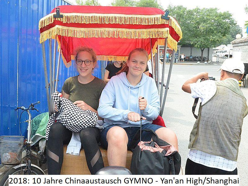 In den zwei Wochen unserer Reise konnten wir sowohl Eindrücke aus Peking als später auch aus Shanghai gewinnen. Während des ersten Teils unsere Reise begleitete uns unser Reiseführer Johnny; er führte uns noch am Tag der Ankunft zum berühmten Sommerpalast, fuhr mit uns per Rikscha durch die Hutongs Pekings und ermöglichte uns eine private traditionelle Teestunde, wo uns Jasmintee angeboten wurde, der uns noch die ganze Reise begleiten würde.