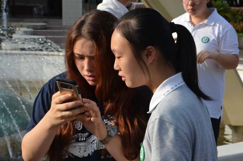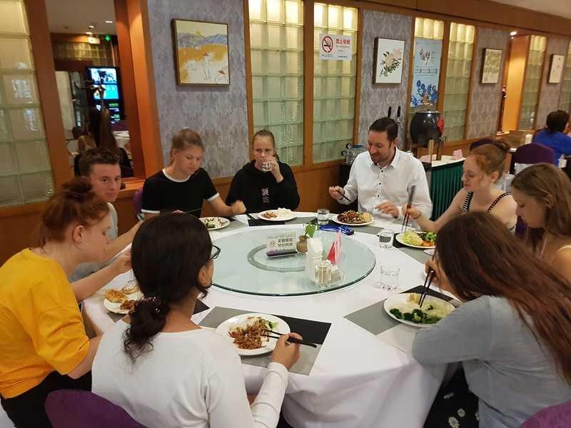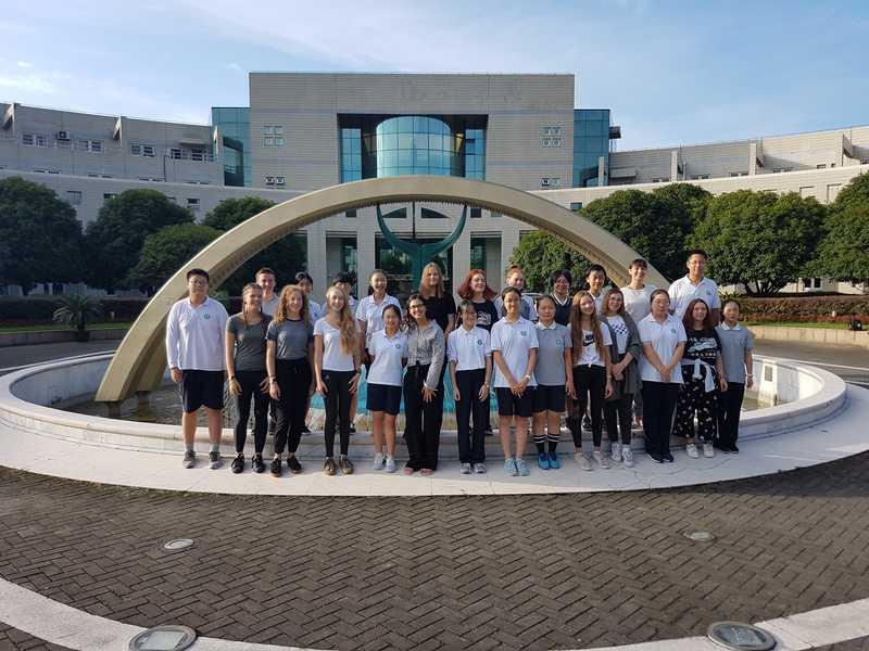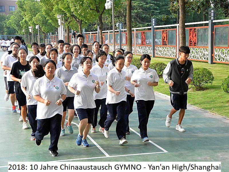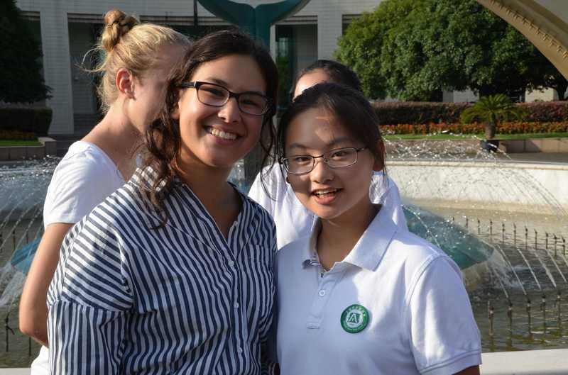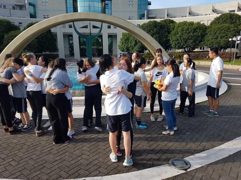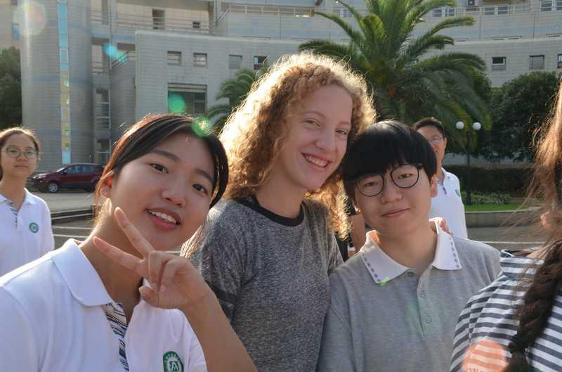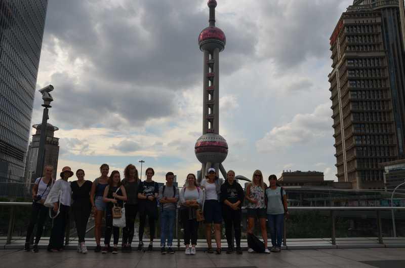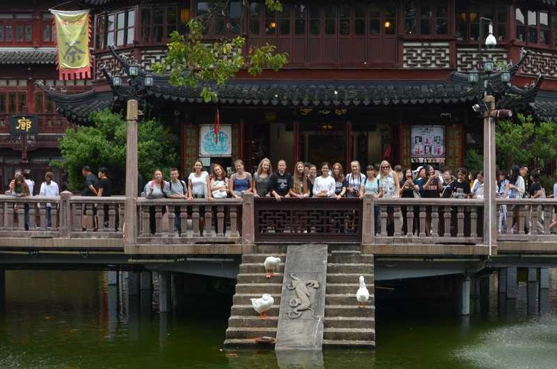 Mit dem Schnellzug fuhren wir von Peking gefühlt „einmal quer durch China“ nach Shanghai, dem Standort unserer Partnerschule. Wir trafen unsere Partnerschüler wieder, die wir bereits bei ihrem Besuch in Nieder-Olm kennengelernt hatten und verbrachten einige Tage im Internat, wo wir gastfreundlich und mit viel chinesischem Essen begrüßt wurden. Bis auf einen Tag aßen wir nie bei den Schülern, sondern in der Lehrerkantine. Wenn wir nicht gerade die Stadt erkundeten, in der Metro von 1 – 14 zählten, damit niemand verloren geht, oder Läden durchstöberten, begleiteten wir unsere Partnerschüler durch ihren Schulalltag. Dieser unterschied sich im Wesentlichen kaum von unserem. Die größte Ausnahme war hierbei wohl noch die Morning Ceremony, eine Versammlung aller Schüler und Lehrer, jeden Morgen vor Unterrichtsbeginn um 7 Uhr morgens. Alle tanzten gemeinsam, wärmten sich auf und auch uns wurde die Choreografie beigebracht. Das Flaggenhissen in Uniform, untermalt von Musik hatte eine enorm beeindruckende Wirkung.