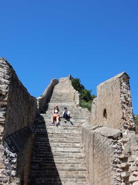 Im Kontrast zu dieser Seite Chinas stand die beeindruckende Wanderung auf der Chinesischen Mauer. Ein jahrhundertealtes Bauwerk, zusammengehalten von nicht Zement, sondern „sticky rice“- gekochtem klebrigen Reis, angemischt mit Wasser und tonnenweise zwischen das Gestein gespachtelt. Hier begleitete uns nicht nur unser Reiseführer sondern auch handgroße Gottesanbeterinnen, Raupen und… Ähnliches.